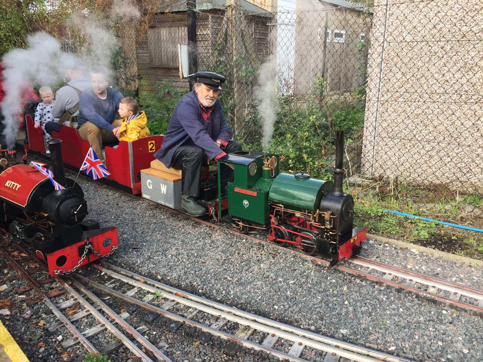 We have a raised 45mm and 32mm gauge garden railway, with an oval shape with loops and siding for setting up rolling stock and steaming bays, enabling running of G scale and Gauge 1.